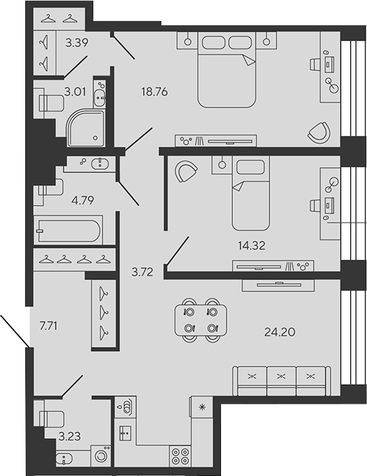 Площадь от 68 м2