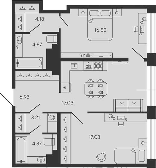 Площадь от 57 м2