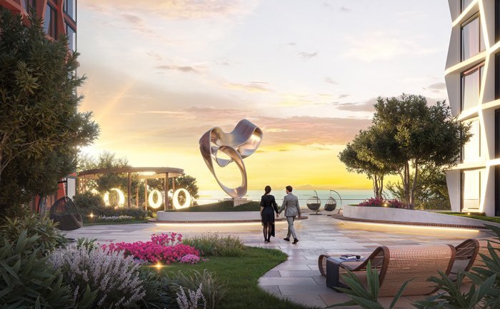 Самый футуристичный ЖК Санкт-Петербурга на первой береговой линии Финского залива. Высокий уровень комфорта внутри квартала Вы будете ощущать благодаря собственному ландшафтному парку площадью 2 600 кв.м. со спортивными зонами, детскими площадками событийной площадью и местами для отдыха. А еще для Вас на кровле стилобата раскинутся зеленые сады с интерактивными площадками, зоной для занятий спортом и амфитеатр.