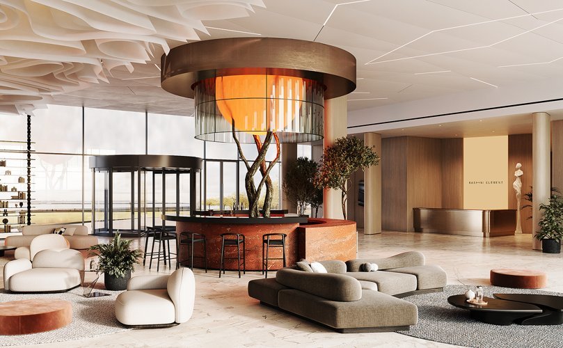 Интерьеры общественных пространств BASHNI ELEMENT разработаны при участии искусственного интеллекта. ИИ создал неповторимый дизайн, а архитекторы ELEMENT довели его до совершенства.