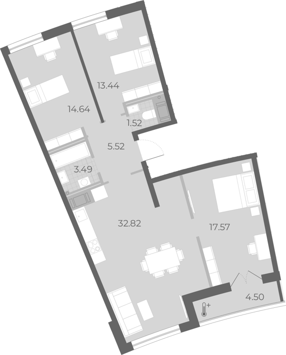 Площадь от 72.5 м2