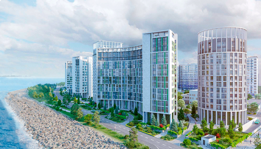 Дома на перво береговой линии Финского залива с уникальными видовыми характеристиками: большинство квартир имеют прямые виды на воду и благоустроенную набережную, что создает в доме уют и одновременно позволяет вырваться из городской суеты.